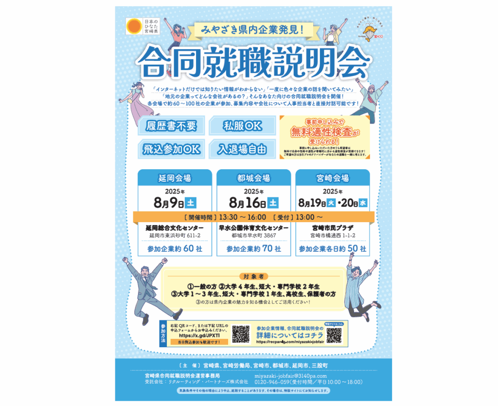 8/9開催!「みやざき県内企業発見!合同就職説明会(延岡会場)」に参加します。
